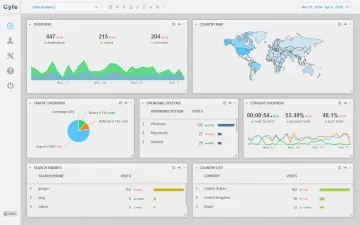 Cyfe es una aplicación de tablero todo en uno que ayuda a los usuarios a monitorear y analizar datos dispersos en todos sus servicios en línea como Google Analytics, Salesforce, AdSense, MailChimp, Facebook, WordPress y más desde una sola ubicación en tiempo real.