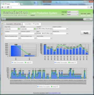 El programa está diseñado para saber todo de sus productos, como cuáles productos tienen que ser producidos, (Kanban de producción) la frecuencia con la que se mueven (consumo, ITO, etc…), dónde se encuentran (Gestión de Almacenes), todo está a su disposición inmediata y sobre todo, claramente visualizado.