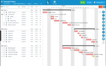• Dependencias y gestión de la carga de trabajo : el software de gráficos de Gantt tiene una función de dependencias que permite a los usuarios alinear mejor sus planes de proyecto, cuando se realizan cambios en una tarea con dependencias, el resto de las tareas en el gráfico se ajustan automáticamente.