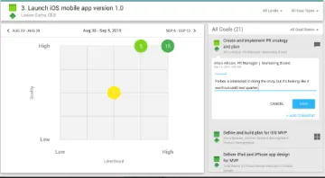 Khorus comunica los objetivos estratégicos a todos los niveles de la organización y les brinda autonomía a los empleados a medida que crean objetivos que se alinean con la dirección más amplia. Chaos se reemplaza con claridad en el plan de juego, cada trimestre.