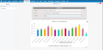 NovaSec MS puede mantener un repositorio de la normatividad aplicable a tu organización sin limitante en la cantidad de normas a tener en el sistema. Puede establecer la calificación el nivel de cumplimiento de cada norma, Hacer seguimiento a cada requisito normativo, calificar su nivel de cumplimiento, registrar observaciones y recomendaciones, asociar documentos a la calificación de los requisitos normativos como registro de evidencia, crear ciclos de cumplimiento por periodos de acuerdo a la necesidad de actualización, obtener reportes gráficos y de datos para observar el nivel de cumplimiento o para hacer una comparación del cumplimiento en diferentes momentos, mantener de forma centralizada la gestión del cumplimiento, con toda la información controlada, con la integridad que requiere para tener la tranquilidad de reportar y dar respuesta a preguntas de entes de control o de auditoría de manera sencilla.