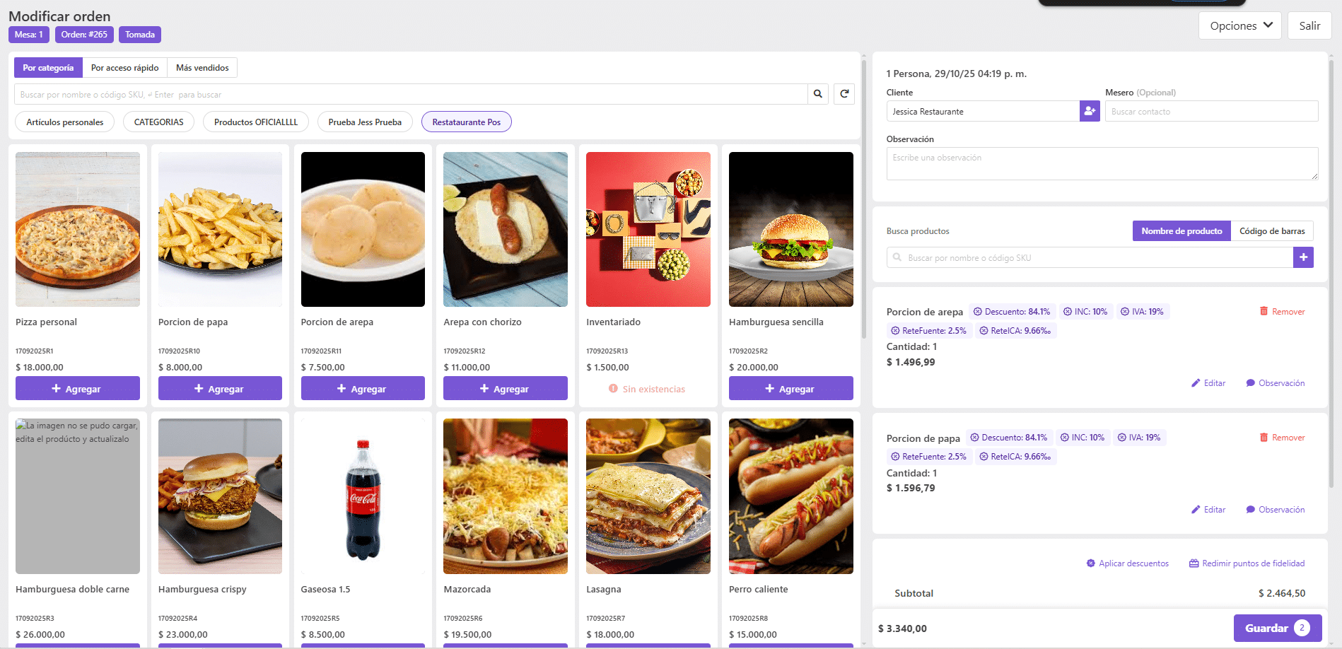 Creación intuitiva de pedidos: permite un proceso ágil y visual, diseñado para la alta rotación del servicio.